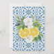 Tonos cítricos y señales fiestas: un cuento de amor escrito en un puesto de limonada o árboles limoneros y naranjas con un fondo de azulejos azules italianos. Esta invitación captura la esencia de esta dulce narrativa, invitándote a celebrar el descubrimiento de amor por parte de la novia y un brillante y soleado tema de la ducha de novias. Explore una ducha de matrimonio con temática cítrica que irradia calor y entusiasmo. Un moderno y moderno ilustracion acuático de naranjas y limones con hojas y flores, decorado en un marco ovalado, es el telón de fondo de esta elegante y moda invitación al brunch de la ducha de matrimonio con tema de cítricos, que también incluye un cuadro con motivos italianos de acuarela. Elegante caligrafía reseña este diseño único que es perfecto para una ducha de novias en primavera o verano, para un fiesta de jardín, una celebración festiva en el interior o un fiesta de casa con poca llave.