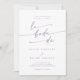 La invitación a una boda española con el código QR púrpura de moda bovina es perfecta para un boda minimalista. El diseño bohemio moderno y liviano de lavanda presenta una caligrafía rústica sencilla con un estilo único y clásico. Incluya un código QR en la parte posterior de la invitación para que el invitado pueda ver fácilmente RSVP, ver detalles o ambos.