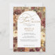 Celebra tu ducha nupcial con esta invitación a bañarse en la ducha de boho elegante floral en flor , con encantadoras flores acuáticas en una rica paleta otoñal de terracota, naranja quemado, borgoña, marrón, crema y amarillo, taupe. Un fondo floral define la escena, con una crujiente capa blanca en arco y un elegante guión moderno de caligrafía que añade un toque sofisticado. Perfecto para las elegantes duchas de otoño, boho o duchas de estilo rústico. Ideal para ceremonias de otoño, celebraciones al aire libre bohemias o bodas de granero. Personalizar fácilmente con los detalles de tu ducha para crear una primera impresión atemporal y romántica.