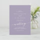 Esta encantadora invitación a la boda púrpura de Lavender moda es perfecta para un boda minimalista. El colorido y polvoriento diseño bohemio moderno presenta una caligrafía rústica sencilla con un estilo único y clásico.