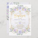 Ayuda a celebrar el bautismo de tu hija con esta invitación femenina. Presenta una elegante composición de lavanda, adornada con flores de color púrpura pastel y vegetación. Haga clic en el botón "personalizar adicional" si desea reorganizar y formatear el estilo y la ubicación del texto. Viene con una parte posterior de rayas rosadas y doradas a juego.