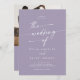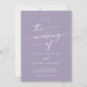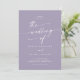Esta moda de boho lavender foto morada y la invitación a la boda en código QR es perfecta para un boda minimalista. El colorido y polvoriento diseño bohemio moderno presenta una caligrafía rústica sencilla con un estilo único y clásico. Personaliza la parte posterior de tu invitación de boda con tu foto favorita de compromiso. Incluya un código QR para que el invitado pueda obtener fácilmente RSVP, ver detalles o ambos.