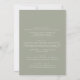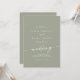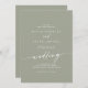 Este boho moda Sage es perfecto para un boda minimalista. El estilo bohemio moderno de tonos verde claro neutro presenta una caligrafía rústica sencilla con un estilo único y clásico. Guarde el papel incluyendo más detalles en la parte posterior de la invitación en lugar de en una tarjeta separada.