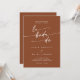 Esta moda barata código QR invitación a la boda española es perfecta para un boda minimalista. El diseño bohemio moderno naranja quemado en tierra presenta una caligrafía rústica sencilla con un estilo único y clásico. Incluya un código QR en la parte posterior de la invitación para que el invitado pueda ver fácilmente RSVP, ver detalles o ambos.