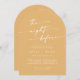 La invitación a cenar en el arco de mariscos amarillo moda boho es perfecta para una noche minimalista antes del ensayo boda. El diseño bohemio moderno, audaz y amarillo brillante, presenta una caligrafía rústica sencilla con un estilo único y clásico.