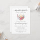 Boho Moon Crystals Feathers Flowers Business Event , Grand Opening, Open House Invitation con fondo blanco. Diseño bohemio acuarela con luna creciente, cuarzo rosa y puntos de cúmulo de cristales de cítricos, rosas rosas rosas, vegetación y plumas blancas. Perfecto para su negocio metafísico, esotérico, spa, terapeuta, sanador energético, clínico y espiritual. Texto listo para tu información. Perfecto para masajistas, lectores de tarot, curanderos de energía, terapeutas, curación holística, spa y clínicas e instructores de yoga. Elementos de negocio coincidentes disponibles.