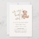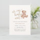 Minimalista Boho We Can Bearly Wait Baby Shower Invitaciones, diseño con osito de peluche acuarela con corbata de arco y estrella en tonos crema, beige, oro, bronceado, colores. Celebre la ducha de bebé con este diseño neutro de género perfecto para niños y chicas. Este diseño también es perfecto para el bebé que se espera en verano, otoño, primavera e invierno.