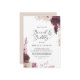 Este brunch de hierba boho pampas y la animada ducha de novia es perfecta para un evento de verano. El diseño de la acuarela floral incluye flores bohemias de color burdeos y rosas rubias con brotes de pampas neutras y hojas de palmera doradas secas.
