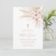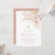 Invitación Boho Pampas Chica Rosa Bautismo Floral Cristianism