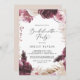 Esta invitación a la bachillerato de hierba boho pampas es perfecta para una noche de verano para las damas. El diseño de la acuarela floral incluye flores bohemias de color burdeos y rosas rubias con brotes de pampas neutras y hojas de palmera doradas secas.