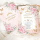 Invitación Boho Pampas Grass Rosas Pink Floral Quinceañera
