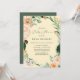Hermosas invitaciones a la ducha de bebé con un elegante marco moderno y neutro de color pastel acuático con vegetación floral botánica en suaves tonalidades de tierra de melocotón, naranja, suave rubor, amarillos y muchos tonos verdes de verde salado a verde claro y más profundo. Sus detalles personalizados se muestran en una distribución tipográfica elevada que coloca al invitado de honor en el centro y frente.