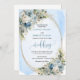 Set the tone for an unforgettable celebration with this elegant watercolor wedding invitation, beautifully designed with dusty blue florals, soft white peonies, and delicate eucalyptus