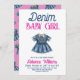 Invitación Boho Pink Denim Girl Blue Jean Baby Shower