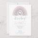 Un lindo "¡Es un chico!" Invitación de Baby Shower con un arcoiris polvoriento azul, gris boho con ilustracion de corazones. Personalizar con sus datos para informar a sus invitados de su evento.