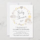 Sincera invitación a la ducha de bebé de boho neutro de género con acuarelas amarillas de un arcoiris, sol, corazones, estrellas, lunas y nubes.
