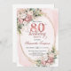Invitación Boho Romantic Blush Pink Floral Gold 80th Birthday