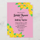 Esta elegante ducha con girasol es perfecta para una moderna ducha de novia florida. El diseño es sencillo y está decorado con girasoles naranjas y amarillos floridos, con una elegante tipografía negra de fondo rosa.