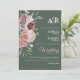 Impresionante invitación a la boda con flores acuáticas pintadas a mano en cálidos tonos rosados y marfil con un toque de vegetación eucalipto sobre un fondo verde sabio. En la parte trasera encontrarás una pequeña disposición floral con las mismas flores que en la cubierta. Puede agregar su información personal al ir al menú de personalización. Forma parte de una elegante suite nupcial con menú a juego, tarjetas de lugar y otros elementos esenciales.