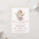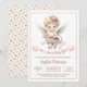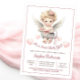 Invitación de baby shower de San Valentín con querubín de ángel de bebé niña adorable y corazones rosados en un fondo de corazón boho. Funciona para San Valentín, pareja y boho, o cualquier baby shower de niña. Simplemente agregue los detalles de su evento.