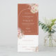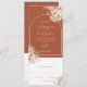 Elegantes pampas florales de boho acuarelas de pasto y arco de moda enmarcan los detalles especiales de la celebración boda en una tipografía elegante sobre un fondo rústico de terracota. La invitación incluye una tarjeta RSVP que se puede cortar y detalles de los invitados al revés. Diseñado por Thisisnotme©