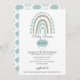 Invitación Boho Watercolor Arcoiris Azul Bebé Ducha
