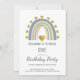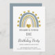 Invitación Boho Watercolor Arcoiris Niño Azul Primer Cumpleañ