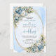 Set the tone for an unforgettable celebration with this elegant watercolor wedding invitation, beautifully designed with dusty blue florals, soft white peonies, and delicate eucalyptus