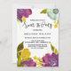 Romántica invitación para fiestas de cumpleaños con flores de color amarillo, púrpura y acuática. Esta invitación está disponible para otros eventos - perfecto para eventos de primavera.