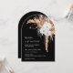 This elegant contemporary arched wedding invitation features watercolor painted orchid flowers and pampas grass on a blackbackground.