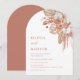 This elegant contemporary wedding invitation features watercolor painted orchid flowers and terracotta pampas grass on a white background.