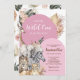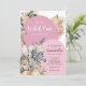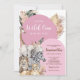 Celebra tu pequeño y salvaje con esta impresionante invitación de Boho Wild One Chica en Baby Shower. Esta invitación mezcla la aventura de la jungla con el estilo moderno de la moda, con una adorable gama de animales de safari, un suave arco rosado, delicado pasto de pampas y flores rosas de boho. Perfecto para un safari, una jungla o una ducha de bebé con temática boho, esta invitación le da un toque dulce y elegante a su celebración. BBS469