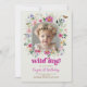 Invitación Boho Wild One Wildflower Foto de primer cumpleaños