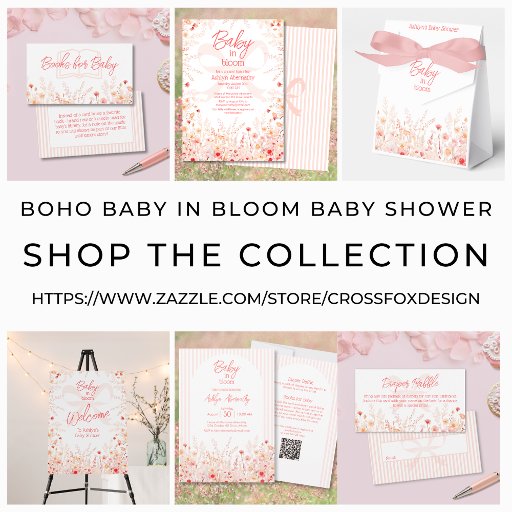Boho Wildflower Baby in Bloom Baby Shower Invitation. Celebrate the mother-to-be with this elegant "Baby in Bloom" invitation, featuring a delicate watercolor meadow of wildflowers in soft pink and peach hues. The airy design and modern script typography create a whimsical, garden-inspired aesthetic perfect for a spring or summer baby shower.