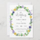 Esta es una encantadora invitación rústica a la boda con temática de flor silvestre botánica. El diseño incluye una corona de flores naturales de primavera, como daffodils amarillos, pansies morados, tréboles, lavanda, arvejas, leones, tulipanes y vegetación de helecho y hiedra. Sería perfecto para una primavera casual o un evento de verano. Póngase en contacto con el diseñador para ver otros artículos coincidentes o cualquier modificación solicitada de este producto.
