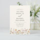 Sumérjase en el romance de la naturaleza con nuestra invitación a la boda Boho Wildflower Garden. Inspirada por la belleza de las flores intactas, esta invitación captura la esencia de una celebración con espíritu libre. El diseño es encantador y cuenta con delicadas flores silvestres bailando en medio de la exuberante vegetación, lo que le confiere el tono perfecto para su boda en el jardín. La estética de la moda boho se complementa con tonos tierra, creando un ambiente de ensueño que invita a los clientes a compartir la magia de tu historia de amor. La intrincada invitación promete un viaje inolvidable, invitando a sus seres queridos a presenciar la unión de dos almas en medio de la belleza del lienzo de la naturaleza. Con su encanto rústico y detalles caprichosos, esta invitación es un testimonio del amor único que florece en el jardín de sus corazones. Que esta invitación sea el primer vistazo al encantador día que espera, prometiendo una celebración tan atemporal y vibrante como las propias flores silvestres.