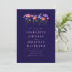 Set against a rich elegant navy blue background, the invitation highlights a vibrant palette of hot pink, blue, purple, periwinkle, orange and bold yellow tones. Elegant blush pink script paired with clean, modern typography adds a refined and timeless touch, while the whimsical floral arrangement brings a relaxed fun boho aesthetic.
