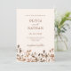 Esta sencilla y bohosa invitación a la boda incluye un fondo beige neutro y mullido y flores silvestres de acuarela marrón y terracota de otoño, con tu foto en la parte posterior enmarcada por un overlay con flores silvestres a juego.