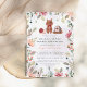 Personalice hoy mismo esta invitación a la ducha de bebé por correo de moda con sus nombres y detalles. Simplemente pulse el botón "Personalizar" para cambiar el texto en los cuadros de plantilla o seleccione "Hacer clic para más personalizar" para reorganizar y formatear el estilo y la ubicación del texto. Presenta una vegetación de flores silvestres color agua boho y unos caprichosos animales de bosque dibujados a mano. Hay un poema corto que dice: "Como no podemos reunirnos hoy, ¡duchemos a la familia desde lejos! Las tarjetas y los regalos mostrarán que nos importa, ¡aunque quisiéramos que pudiéramos estar ahí!". Las tarjetas se revertirán a una imagen de lavado de acuarela. Ver el enlace de la colección en esta página o visitar nuestra tienda para más diseños! c) Gráficos Cali.