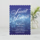 La invitación azul marino elegante de la fiesta de cumpleaños del dulce dieciséis con una fuente cursiva de lujo blanca fijó en un fondo único azul elegante de las luces del bokeh.
