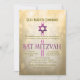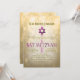 La invitación a la fiesta de Bat Mitzvah con colores claros y dorados.