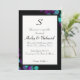 Invitación Bokeh morado y Verde azulado monogramado