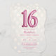 Sombroso fondo de luces de bokeh de oro con Relieve metalizado falso rosa caliente número 16 para el dulce 16 cumpleaños de tu adolescente. Le encantará el glamour de este diseño festivo.