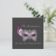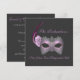 Este diseño presenta un hermoso encaje y una máscara de plumas en tonos grises, lilas suaves y violeta sobre un fondo gris rico. Personalizar con su información personal para satisfacer sus necesidades. Tal vez quieras arriesgar el título del evento para acomodar al Mardi Gras, cumpleaños y más.