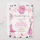 Chicas de la Invitación al cumpleaños del primer rodeo de la discoteca Hot Pink Cowgirl Ball, guitarra, escoria, cactus, daisies y más. Esta invitación de cumpleaños de disco occidental también incluye una cuerda no editable como el encabezado de fuentes y el patrón de impresión de vacas.