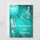 Personalizada y elegante personalizado invitaciones para fiestas de cumpleaños número 65 para mujeres. Hermosa fiesta de cumpleaños verde azulada y blanca de doble cara invita a las mujeres con una divertida bola de espejo de disco retro, glamorosa imagen impresa diamante de imitación purpurina, secuencias, joyas destellan notas musicales purpurinoso / notas musicales y un fresco micrófono retro de color verde azulado en un vibrante luz azul turquesa verde azulada y fondo brillante. Moda, señorial, adorable, jovial, modernas invitaciones con colores de moda. Estas elegantes, sofisticadas, bonitos de música retro son invitadas a la discoteca, decoradas/impresas a ambos lados. Invitaciones perfectas para una cena bailando o cantando karaoke. NOTA: Todas las invitaciones en Zazzle tienen imágenes impresas planas. Si necesitas ayuda para personalizar tu producto, ponte en contacto conmigo a través de mi tienda y estaré encantado de ayudarte. 6
