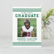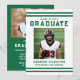 Invite family and friends to celebrate your graduate with this classic varsity-style graduation party invitation, featuring bold green athletic stripes and coordinating collegiate typography for a timeless sports-inspired look. The front highlights the graduate’s photo along with their name, school, and graduation year, creating a strong, polished layout that reflects their hard work and achievement. The back showcases a horizontal photo at the top, with space below to include graduation party details such as the date, time, location, and RSVP information for a complete and personalized design. Ideal for high school and college graduates, especially athletes and sports seniors, this green photo graduation party invitation offers a refined and memorable way to announce and celebrate their accomplishment.