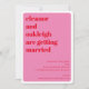 This eye-catching wedding invitation features a modern, bold typeface with a playful pink and red color palette - perfect for couples planning a stylish, vibrant celebration. The minimalist layout balances personality with clarity, while all text is fully customizable to suit your special day. Update names, dates, location, and RSVP details effortlessly. This flat card design is ideal for chic, contemporary weddings with a creative flair.