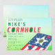 Elija esta invitación moderna para fiesta de Cornhole de lanzamiento de saco de frijoles patrióticos de EE. UU. para su próxima fiesta. El diseño presenta una tabla de Cornhole roja, azul y blanca, y bolsas de frijoles, sobre un fondo verde moderno. Personalice fácilmente el diseño con los detalles de su fiesta para crear invitaciones para fiestas de cumpleaños, fiestas de graduación, fiestas de jubilación, fiestas relacionadas con bodas, baby showers o fiestas de barbacoa en el patio trasero.