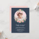 Esta invitación hermosa de la fiesta de cumpleaños ofrece su foto, enmarcada por las flores de la acuarela en rosa sobre un fondo oscuro de los azules marinos.